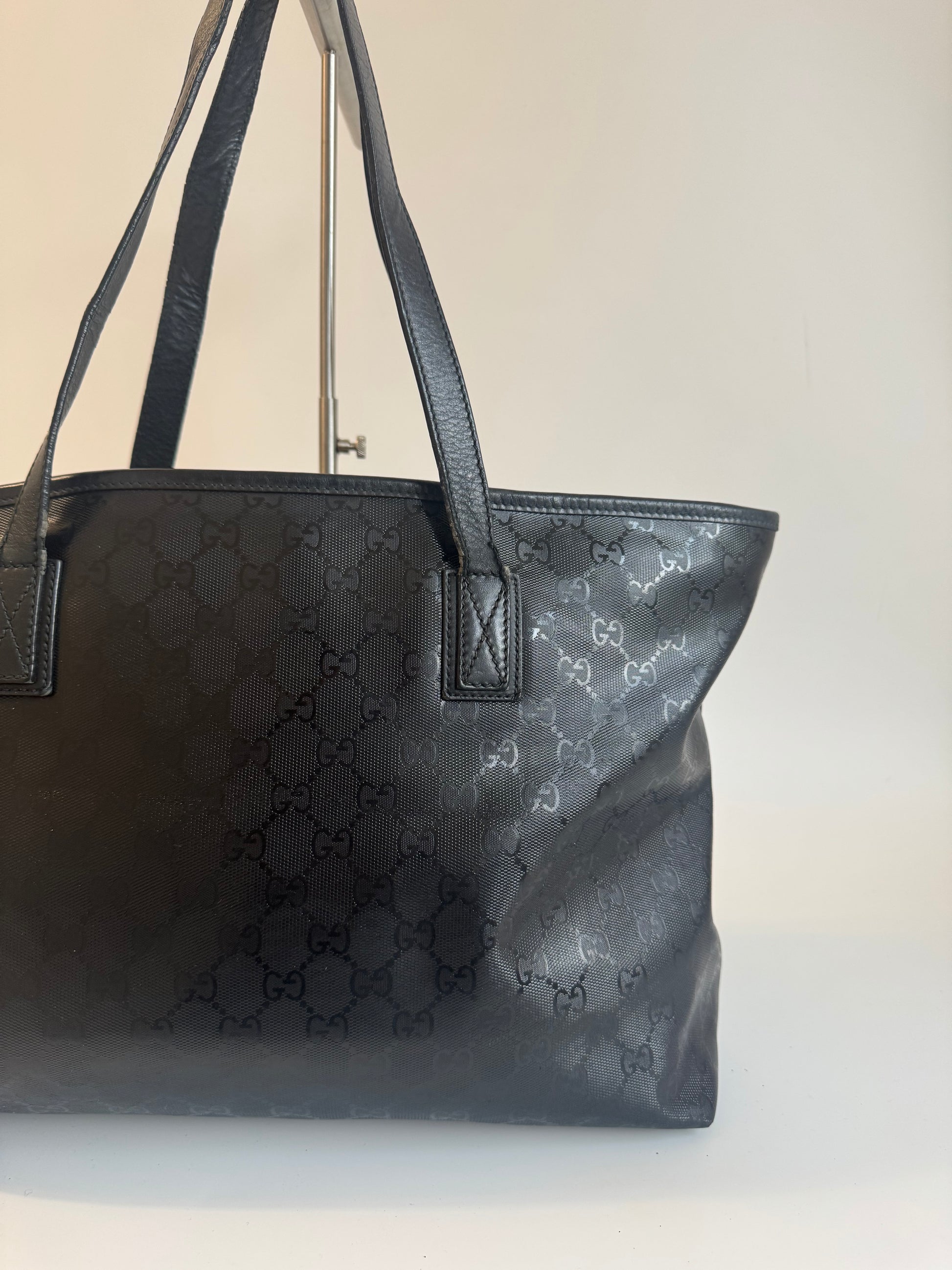 Diese elegante Gucci Tote Bag aus dem ikonischen GG Supreme Canvas vereint zeitlose Ästhetik mit praktischer Funktionalität. Das geräumige Innenleben bietet ausreichend Platz für den Alltag, während die langen Tragegriffe für angenehmen Tragekomfort sorgen – ob über der Schulter oder in der Hand.
